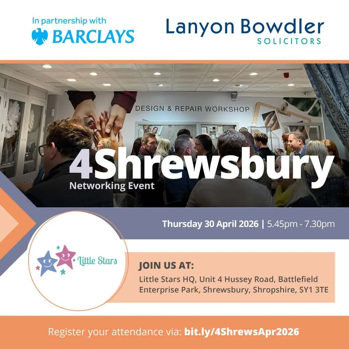 On Thursday 30th April, from 5:45pm to 7:30pm, we’ll be opening the doors to our HQ at Battlefield Enterprise Park for a special networking event hosted by Barclays and Lanyon Bowdler.