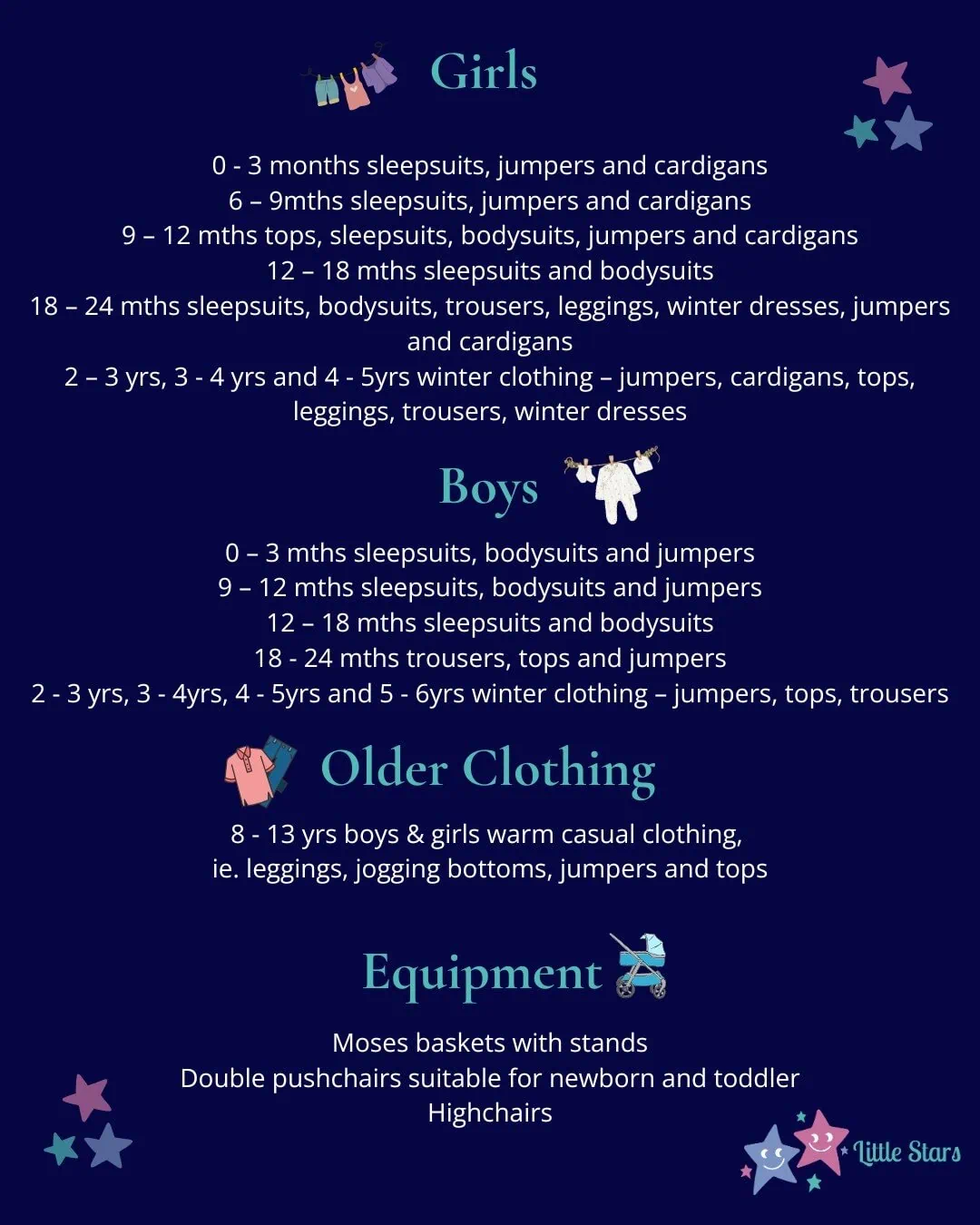 Every day, families across Shropshire turn to Little Stars for help – and we are only able to respond because of the generous donations from people like you. The items you give become lifelines. They bring comfort to newborns, confidence to children and compassion to parents doing their best in very difficult times.